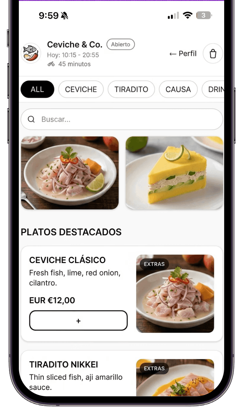 Tu cliente puede entrar, elegir y pedir en cualquier momento, desde mobile o desktop, sin depender de que tú estés conectado.